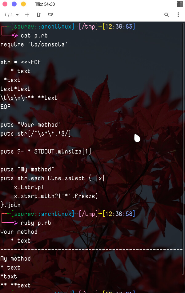 , which indicates start of line, Ruby and rubular.com give the same result: they match the first two lines fully, and match the third line starting at the *